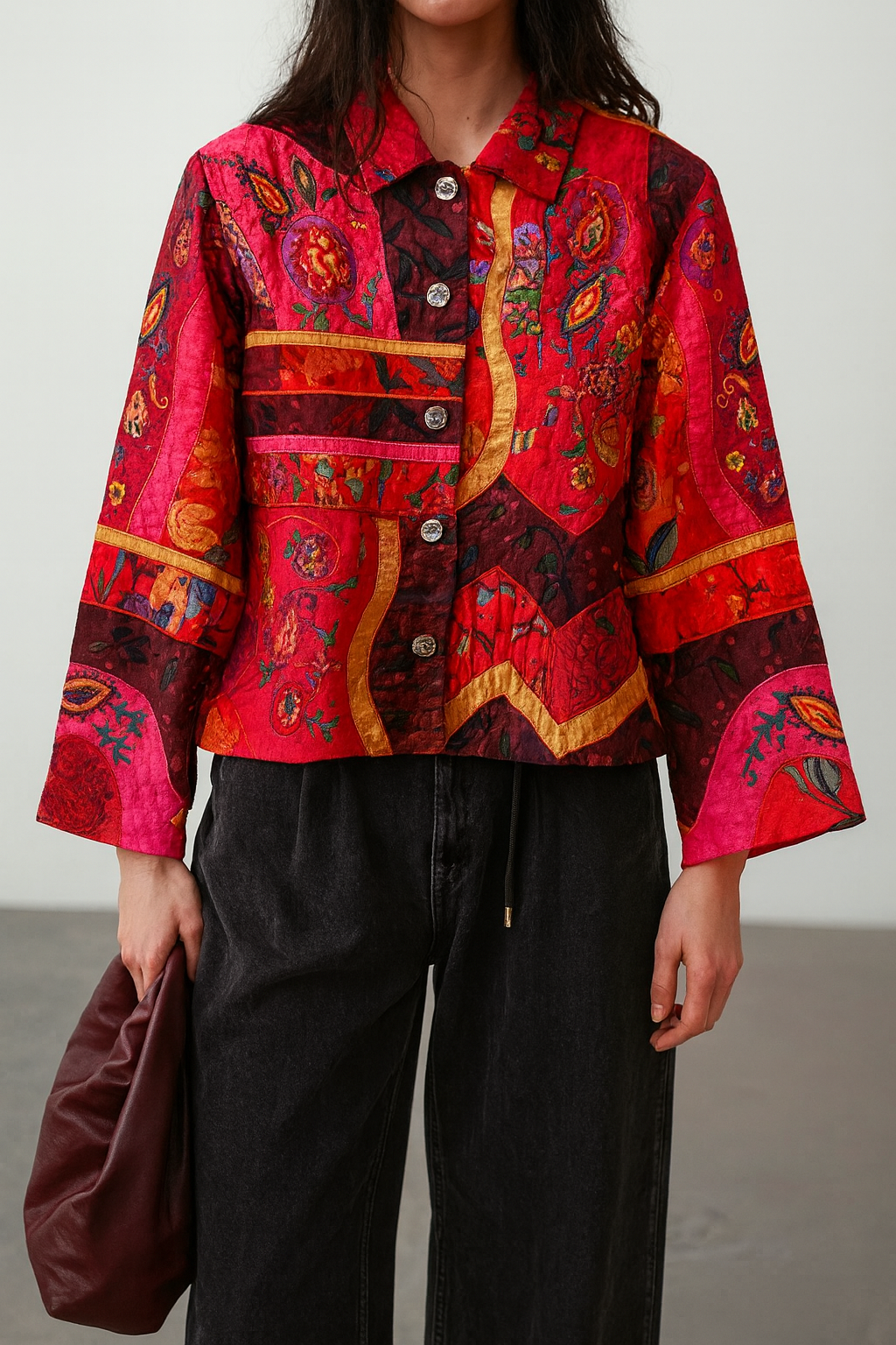 Vintage Sandy Starkman Silk Patchwork, Beaded and Embroidered Shaket