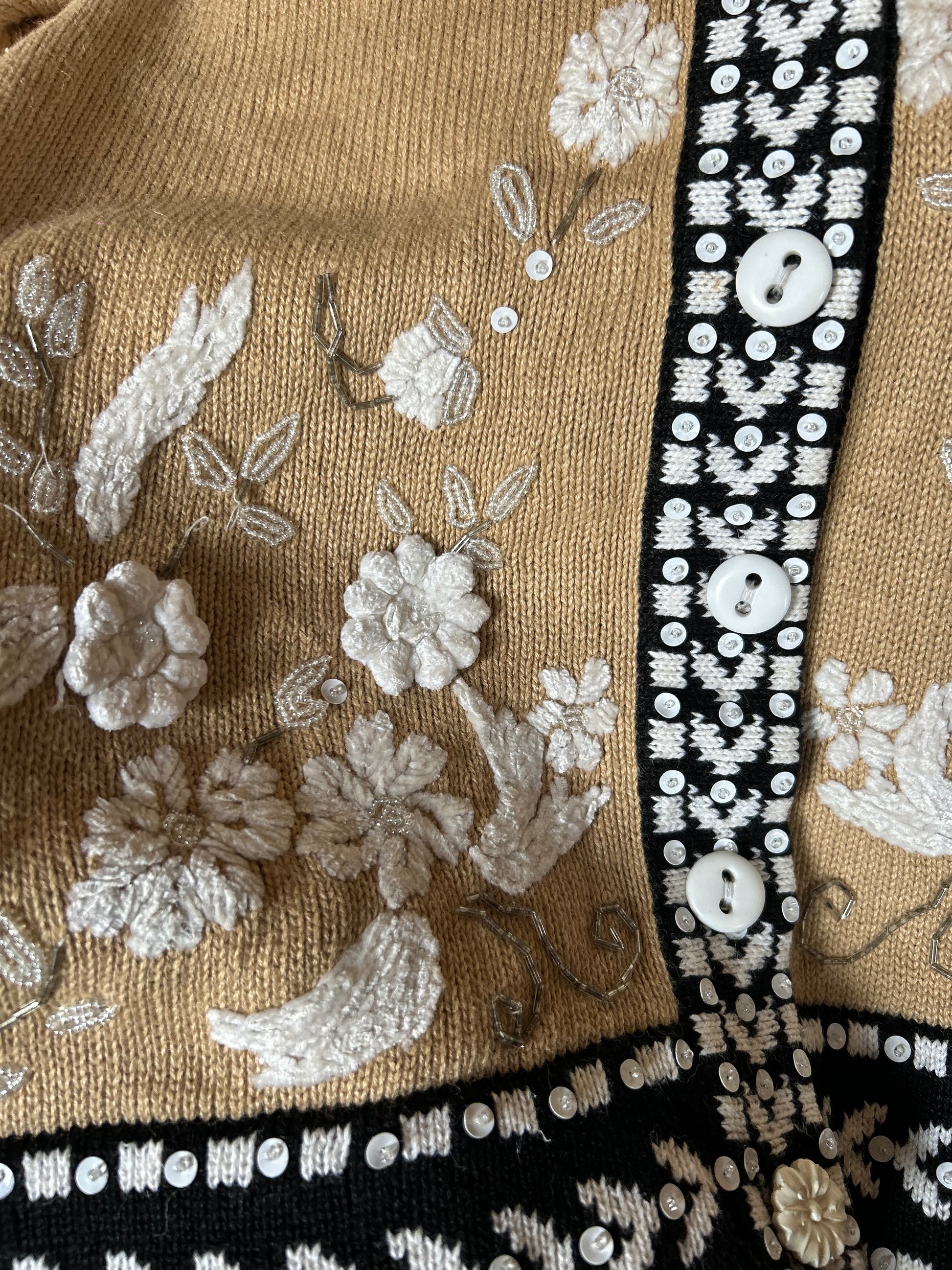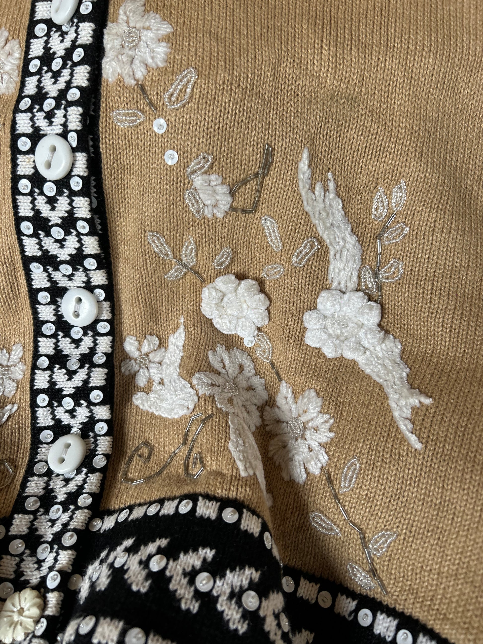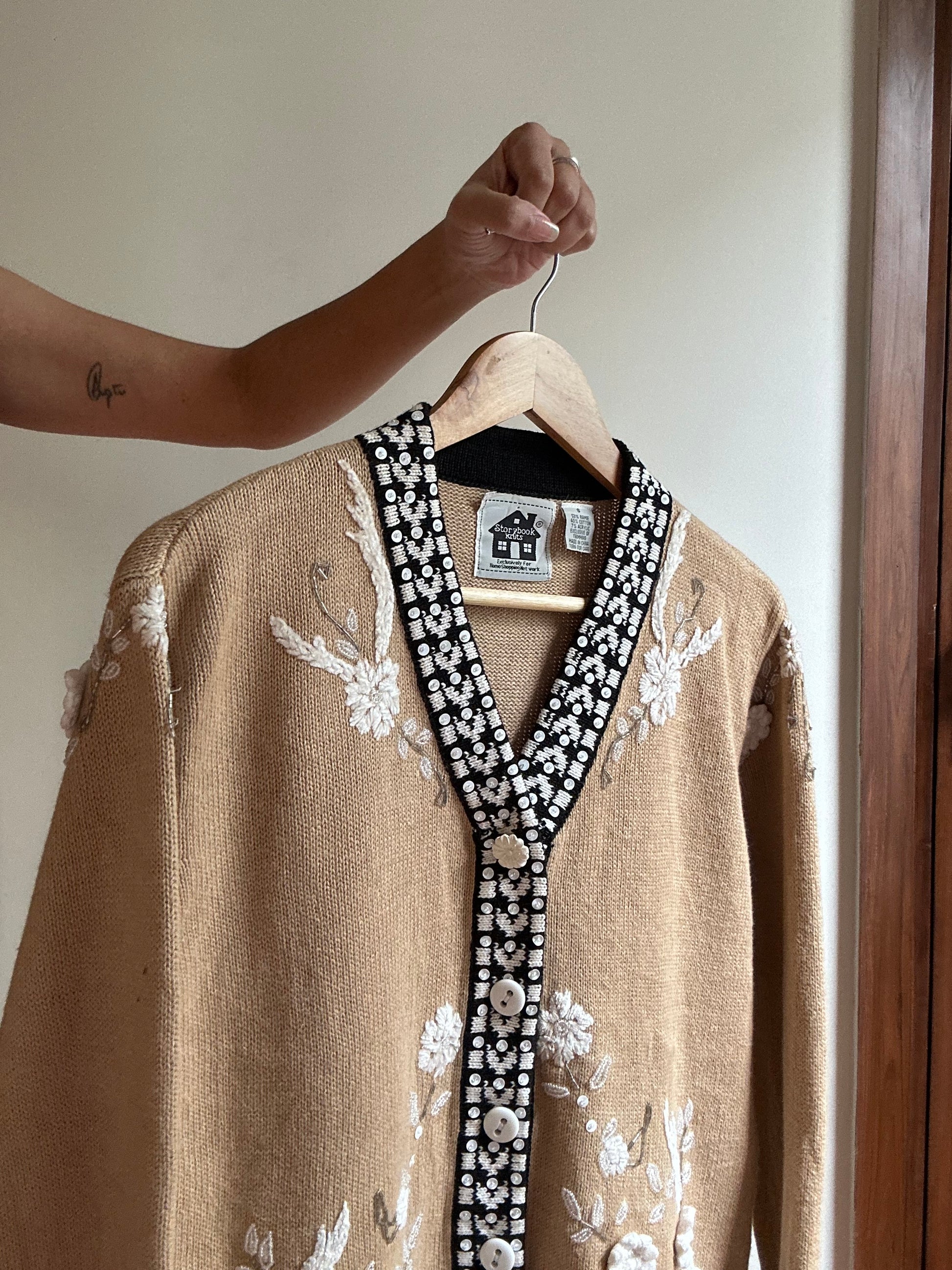 Vintage Story Book Knits Embroidered, Beaded Knit Cardigan